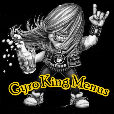 Gyro King Breakfast Menu Gyro King Lunch Menu Gyro King Dinner Menu Gyro King Desserts Menu The Power of Music! “I miss the days of the Garage Bands sound! Rock – n – Rolling all night long driving the neighbors mad with all the noise. That’s where you Hear and feel The Passion of Rock
